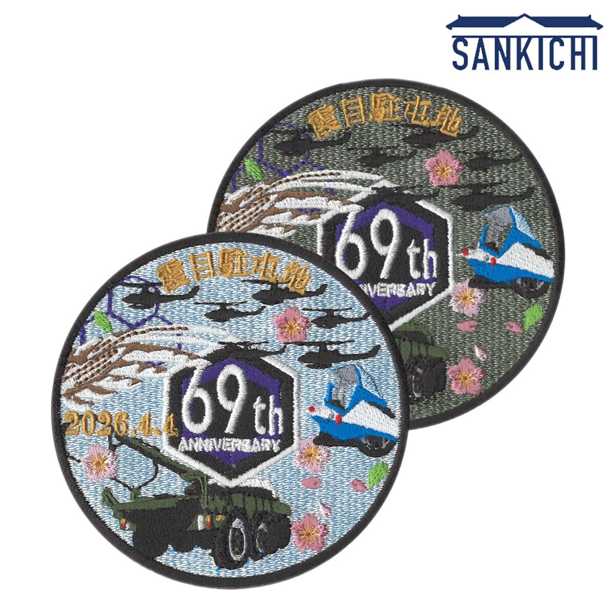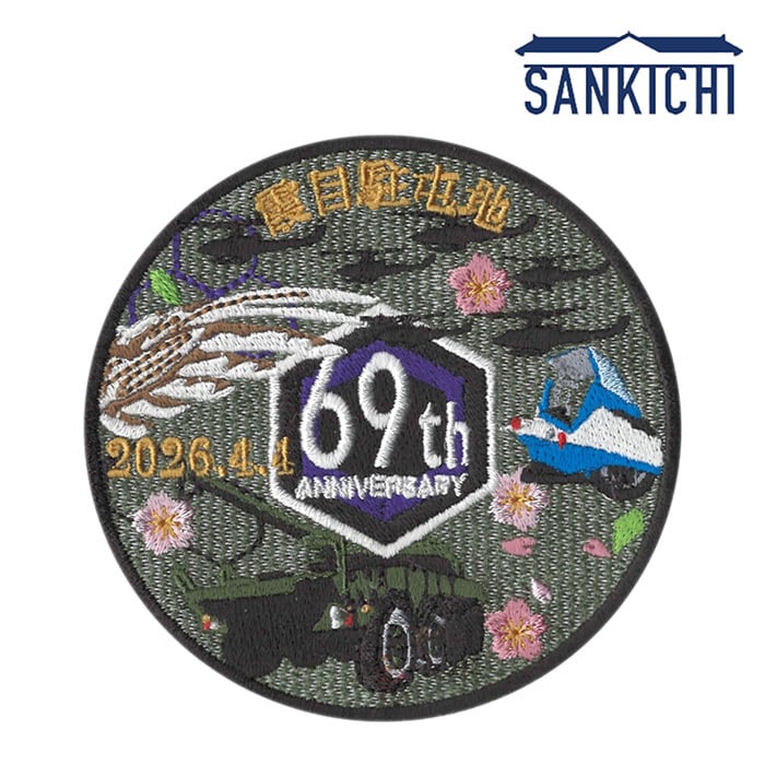 陸上自衛隊霞目駐屯地で行われた創立69周年記念行事の来場記念ワッペンです。 ライトブルーとオリーブの2カラーよりお選び頂けます。 ※サイズ 直径約9cm ※ベルクロ付