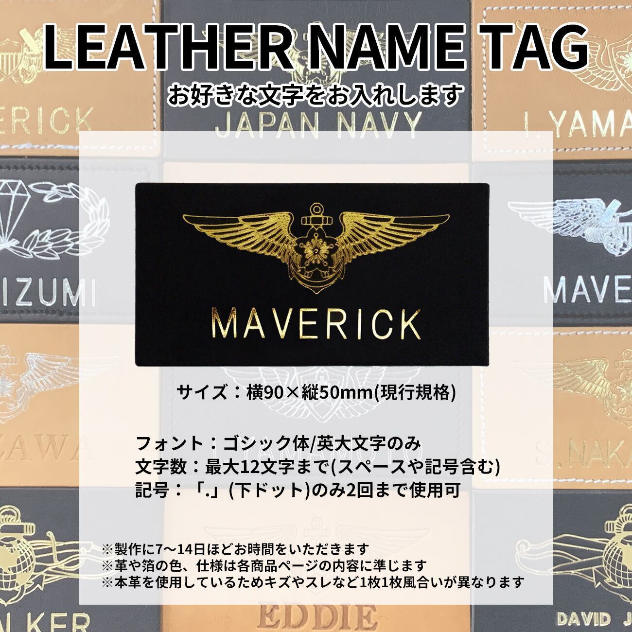 革にき章とご希望の文字を箔押しする、本格的で大人なレザーネームタグです。