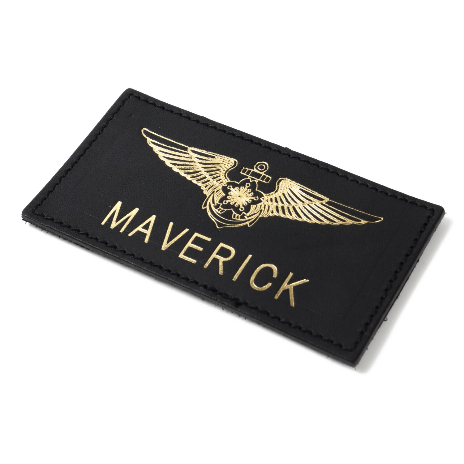 革にき章とご希望の文字を箔押しする、本格的で大人なレザーネームタグです。