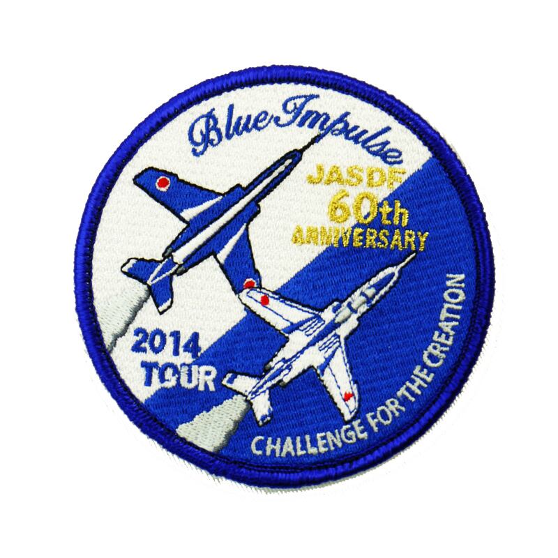 ブルーインパルス2014年のツアーワッペンです。 ブルーインパルスの隊員が年間を通して航空祭等で着用しました。 航空自衛隊60周年記念でもあります。 ※この商品は国内メーカー(カメオカ)で製作されています。 サイズ:直径 約9cm ベルクロ付き