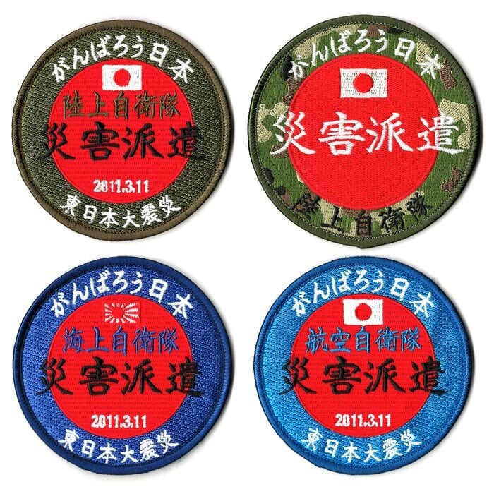 陸自、海自、空自の災害派遣パッチです。 夜間の活動時に見えやすくするため、一部蓄光素材でできています。 両面ベルクロ付き。 サイズ:角型 約9.5×6.5cm 丸形 直径約9cm(迷彩のみ9.5cm)