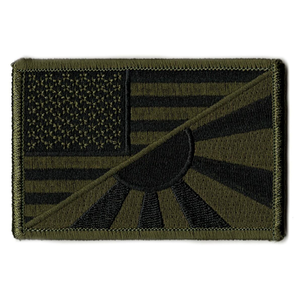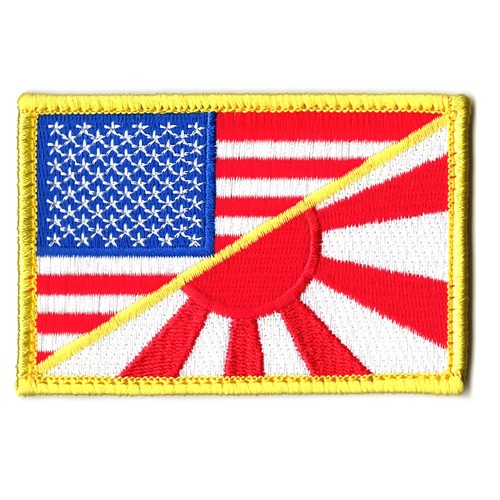 旭日旗と星条旗が半々で描かれたワッペンです。