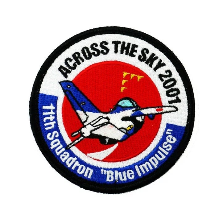 ブルーインパルス2001年のツアーワッペンです。 ブルーインパルスの隊員が年間を通して航空祭等で着用しました。 ※この商品は国内メーカー(カメオカ)で製作されています。 サイズ:直径 87mm ベルクロ付き