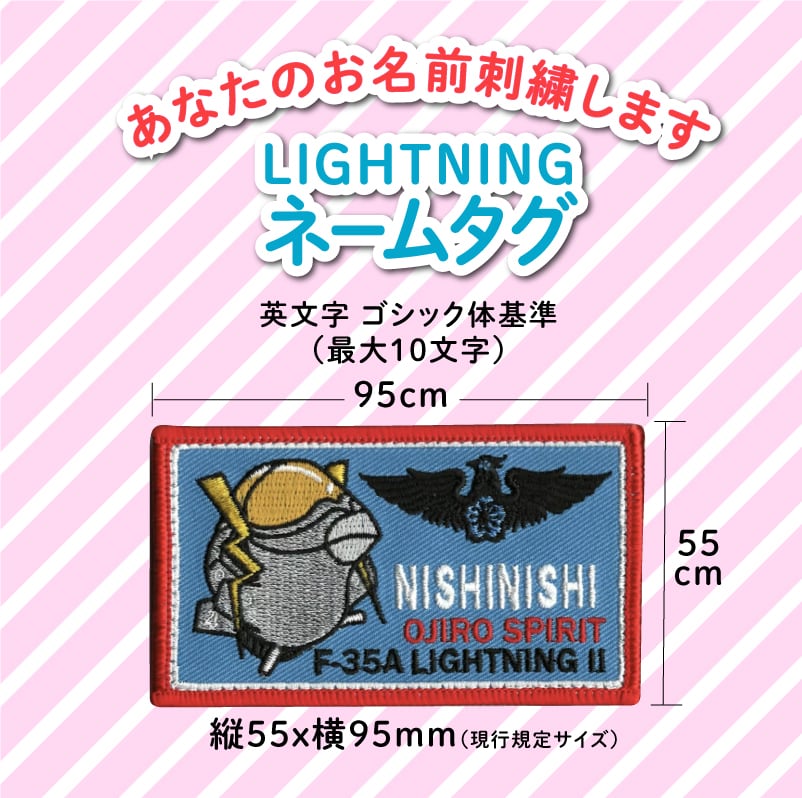 航空自衛隊 ファントムおじいちゃん無頼 LIGHTNINGネームタグ ファントムおじいちゃんファン必見のネームタグです。 贈り物に、ジャンパー、カバンのアクセントにいかがでしょうか? ※刺繍の文字色は、ホワイト、グリーン、ゴールド、イエロー、ブラックからお選びください。 ※にしにし先生公認 ※両面ベルクロ付 ※航空自衛隊現行サイズ:約5.5cm×約9.5cm ※ご注文の際、備考欄に入れたい文字を忘れずにご記入ください。 例:M.NAKAMOTO