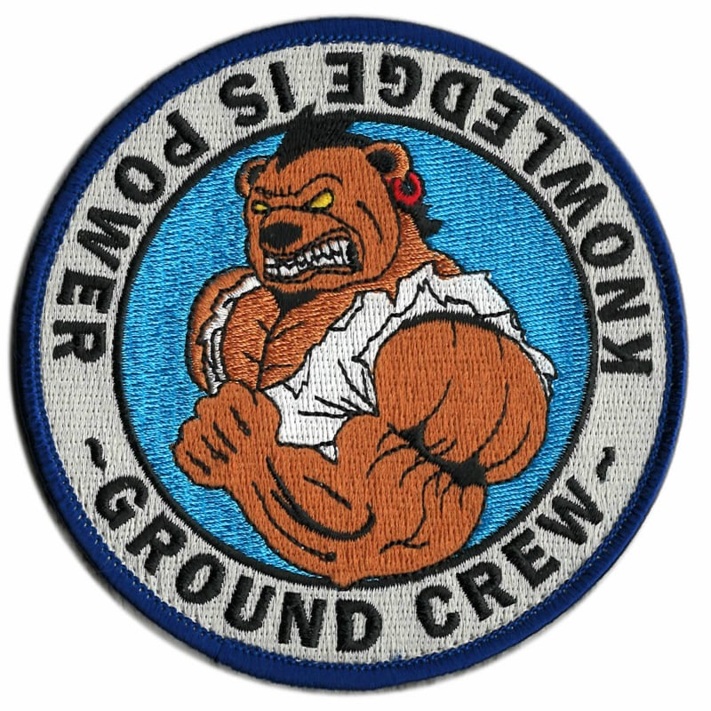 海上自衛隊 厚木航空基地 GROUND CREW パッチです。 迫力の熊のデザインのワッペンです。黄色と水色2つのパターンがあります。 両面ベルクロ付 直径約10cm ※水色と黄いろ2パターン