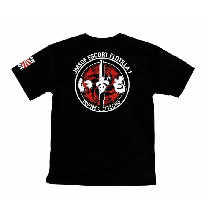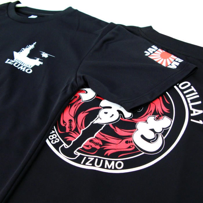 ヘリコプター空母型護衛艦いずものロゴマークがデザインされたドライ(速乾)Tシャツです。
