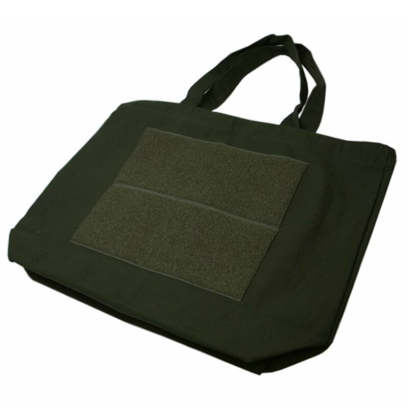 帆布のトートにBIGベルクロ付きのカスタムトートバックです。A4サイズがすっぽり入る使いやすい大きいトート。ビジネスや買い物、エコバックとしても役立つたっぷりサイズです。 材質 キャンバス地 コットン100% 寸法 縦 33.0cm 幅 33.0 cm マチ12.0cm 取手 45.0cm カラー:オリーブ