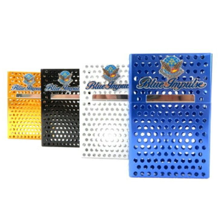 ブルーインパルスのエンブレムマークが付いたアルミタバコケースです。 華麗なアクロバット飛行で人々を魅了する「ブルーインパルス」がおしゃれなタバコケースになりました。 カラー:ブルー・シルバー・ブラック・ゴールド(オレンジメタリック) 外寸:60mm×90mm×25mm