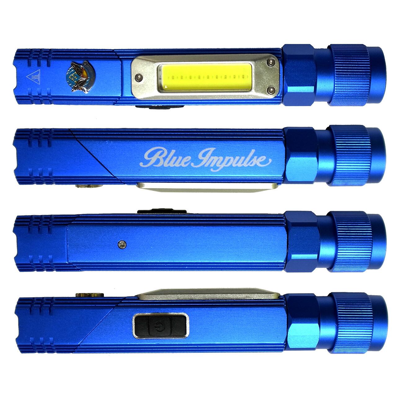 ブルーインパルスのエンブレムが付いたメタリックブルーな懐中電灯です。