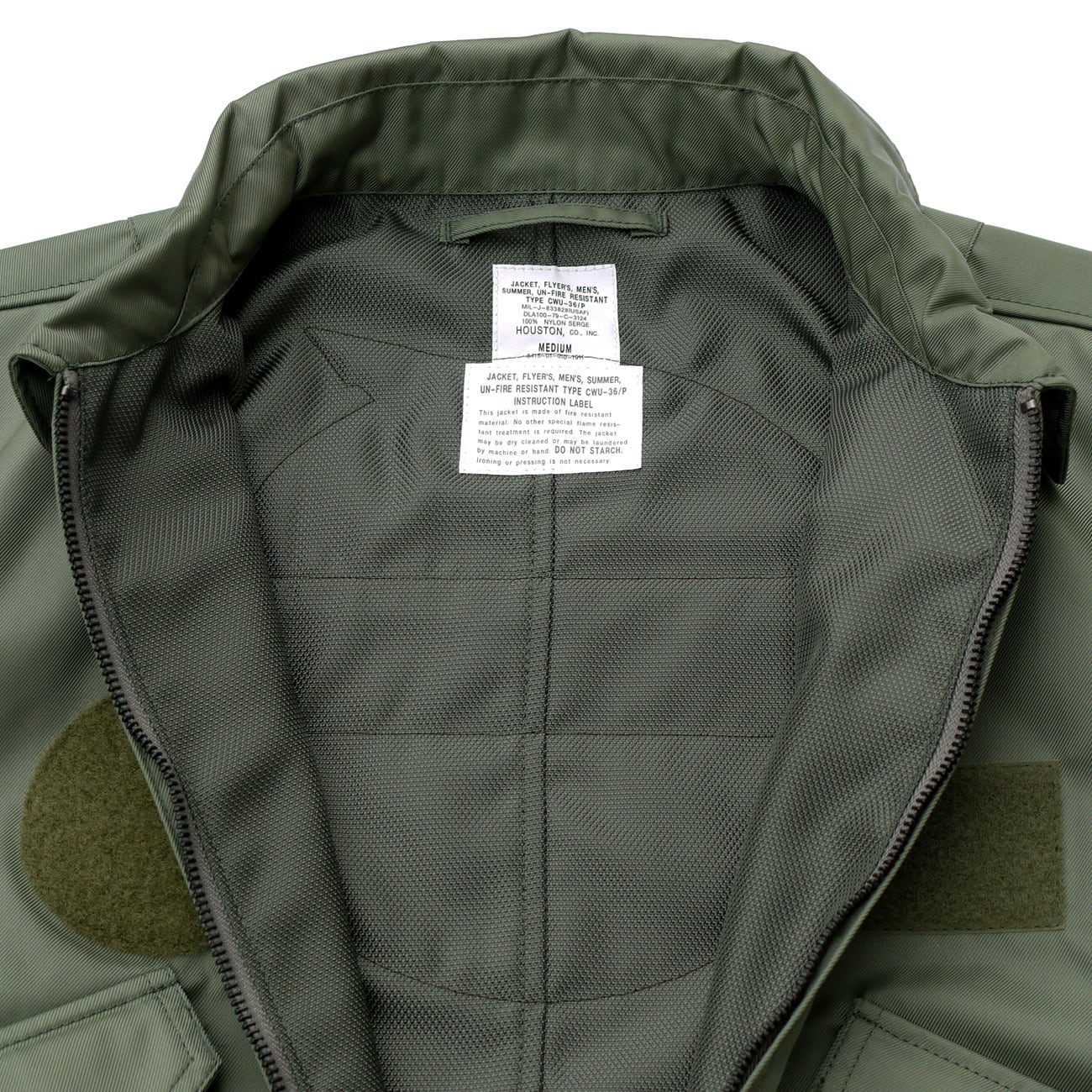 HOUSTON社製のCWU-36/Pフライトジャケットに、大きなオジロの刺繍とベルクロ3点(右胸と両腕)を取り付けたカスタマイズジャケットです。