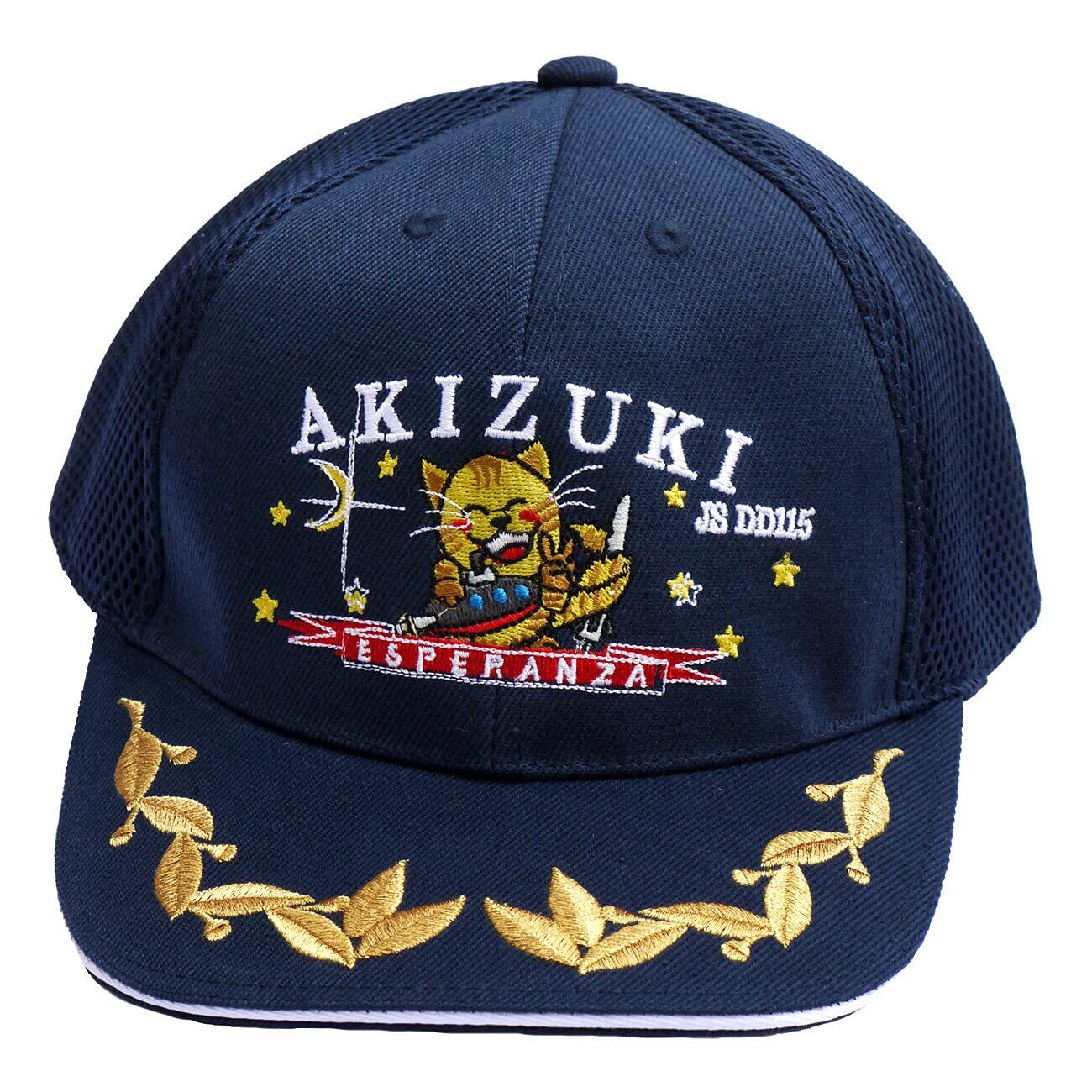海上自衛隊 護衛艦あきづきのマークが刺繍された識別帽です。 側面〜背面にかけて目の細かい2重メッシュ。 金色のモールが付いた佐官用仕様。 収納できるあご紐付き。 色:紺 素材:ポリエステル100% サイズ:フリーサイズ(Lサイズ表記) アジャスター:ベルクロ 背面既存刺刺繍有り:DD 115(黄) 【刺繍】 フォント:楷書体・ゴシック体 文字色:白、赤、青、黄 字数:最大6文字