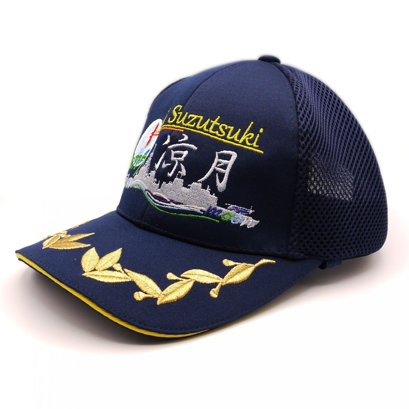 海上自衛隊 護衛艦すずつきのマークが刺繍された識別帽です。 側面〜背面にかけて目の細かい2重メッシュ。 金色のモールが付いた佐官用仕様。 収納できるあご紐付き。 色:紺 素材:ポリエステル100% サイズ:L/LL アジャスター:レール 背面既存刺刺繍無し 【刺繍】 フォント:楷書体・ゴシック体 文字色:白、赤、青、黄 字数:最大6文字