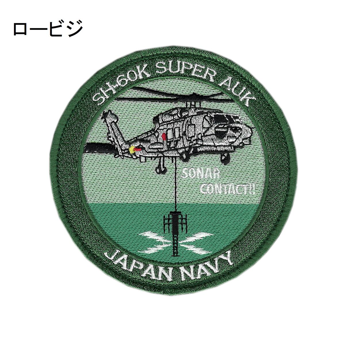 海上自衛隊の哨戒ヘリコプター SH-60K SUPER AUKのワッペンです。 SH-60BをベースにしたSH-60Jの機体を再設計し、搭載システムの更新・強化を図って作られ、開発は三菱重工業と防衛庁(現防衛省)によって行われました。 SH-60Kは対潜戦、対水上戦、警戒・監視,、輸送及び救難、通信中継等、幅広い任務を行っております。 カラーはハイビジとロービジの2色からお選びいただけます。 サイズ:直径約10㎝ 両面ベルクロ付